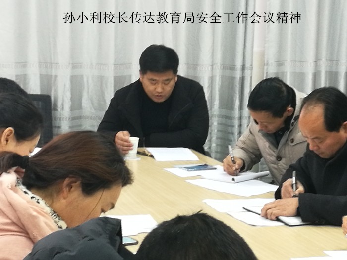 分管安全工作的孙小利校长传达了教育局1月12日全市教育系统“迎接省平安校园创建示范县考核验收”工作会议精神。他强调:做好安全工作的必要条件是履职尽责,不出事故,要把该说的话说到,该做的事做到;安全风险排查要到位,有问题要排查出来,有问题排查不出来就是最大的问题;做好“两照一表”,材料要齐全,责任体系要网格化,一级一级传达,一级一级落实;要把最不放心的事,让最放心的人去做;对安全工作要铁面冷血,不能讲情面,处理问题要果断,有担当。