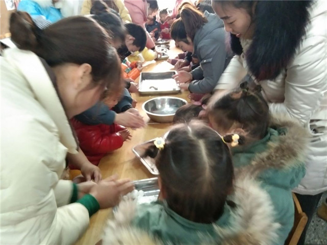 活动以班级为单位,首先班主任将班级活动开展和幼儿在园表现向家长进行详细汇报;接着孩子们给家长展示才艺;接下来家长和孩子一起包汤圆,把回忆、安全、健康、希望、憧憬、祝愿、思念包进每个汤圆里;孩子们一个个欣喜万分,家长们也是热情饱满地包汤圆。最后孩子和家长分享着亲子一起制作的汤圆,心里美滋滋的,一份温暖暖到了心里。幼儿与家长在吃汤圆中感受到了浓浓的新年气氛。通过活动,进一步增进家长与幼儿的亲子感情,让幼儿感受春节的喜庆与团圆,相信,一定会给孩子们美好童年留下难忘的记忆。