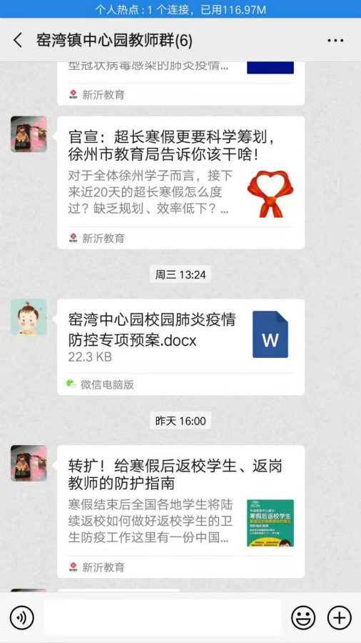 ——窑湾镇中心幼儿园预防新型冠状病毒肺炎的疫情防控工作