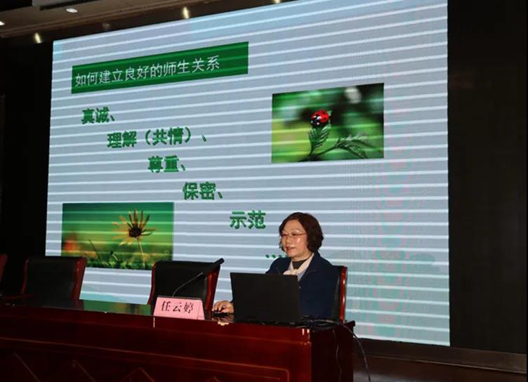 会议邀请知名心理咨询师,就教师如何做好学生心理健康工作的问题,对与会者进行主题为“筑牢学生心理安全防线”的培训。从“初中学生心理健康排查与辅导的必要性”、“如何建立良好的师生关系”、“一对一关爱”的注意事项等七个方面,详细阐述了班级管理及关爱学生的方法和技巧。