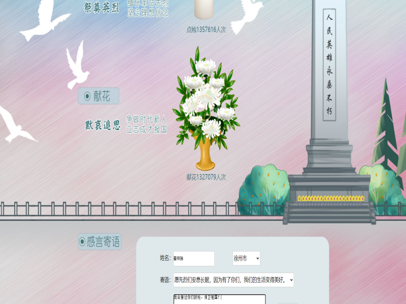 通过组织少先队员参加清明节“网上祭英烈 ”活动,来引导学生们缅怀先辈,教育他们牢记历史,热爱党,热爱祖国,热爱家乡。激励孩子们从小树立报效祖国的远大志向,继承英雄们的家国情怀,将来肩负起实现中华民族伟大复兴的重任!