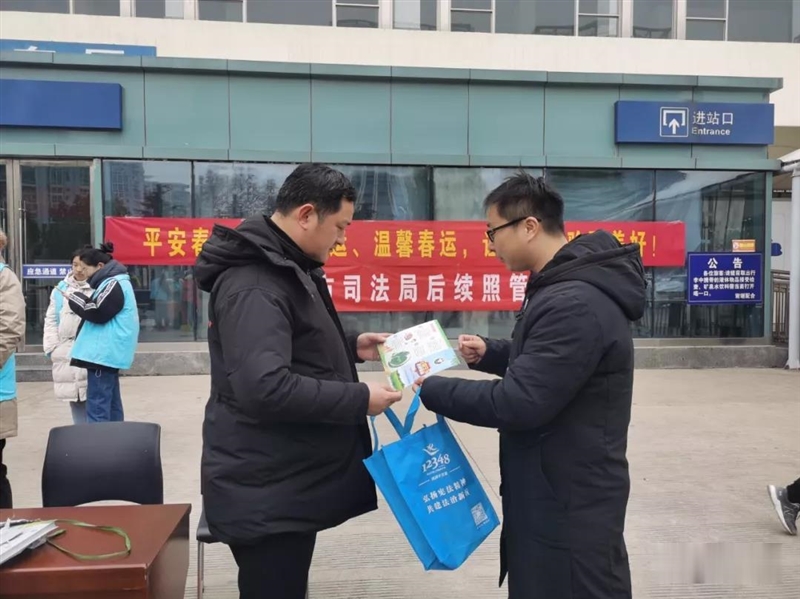 春节期间是外出务工人员和大学生集中返乡团聚、探亲、旅游的高峰期,为提高群众节日期间的法治安全教育观念,1月10日,新沂市司法局联合团市委、公安局、火车站等单位,在火车站站前广场开展“情暖回家路,青春不毒行”宣传活动。