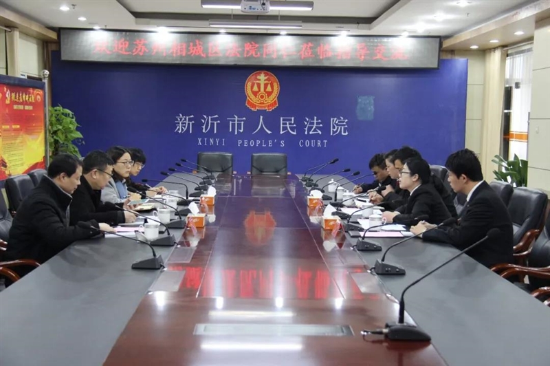 1月10日,苏州相城区法院党组副书记、副院长吴宏一行来新沂法院参观交流案件权重考核、党建、文化建设工作,并进行了座谈交流。我院党组副书记、副院长李泉等陪同。