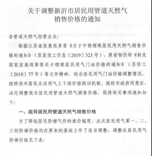 《关于调整市区居民用管道天然气销售价格的通知》(徐发改工价发〔2019〕86号)http://xxgk.xz.gov**/xxgkdesc/xxgk_desc.jsp?manuscriptid=e7bf7f38f12f4ea488531f3c1272f3f1
