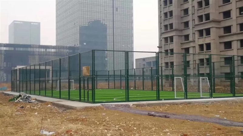 足球场长40米,宽20米,采用人造草坪地面设计,具有柔软、舒适、耐磨、透水性好等特点,球场四周及顶端用铁丝围网内外隔离确保人员安全却不挡视线。目前项目建设已接近尾声,球门安装、场地划线、人造草坪铺设、网围等工程已完成,待照明电路安装结束后即可投入使用。球场建成后将为广大足球爱好者提供一个休闲运动的好去处。