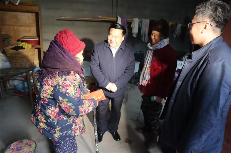 中午时分,张长征一行又来到合沟镇走访慰问建国前老党员、生活困难党员及“优抚对象”。在建国前老党员朱士英家中,张长征动情地说,老人为党的事业作出了贡献,是党的宝贵财富,一定要照顾好老人,让老人安享晚年。在贫困党员马敬荣、“优抚对象”丁本让家中,张长征叮嘱随行相关部门要多关心他们,千方百计帮他们排忧解难。