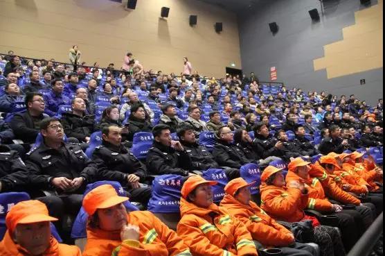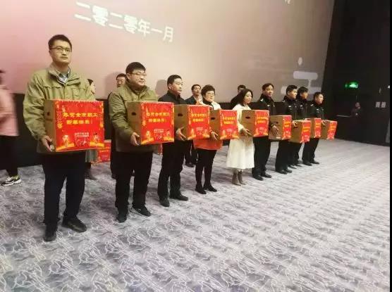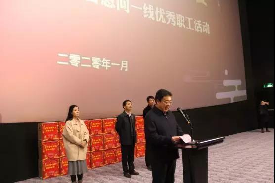 张民与市总工会和汉锦城有关负责人向一线优秀职工代表发放了慰问品,并邀请一线优秀职工代表观看优秀影片。