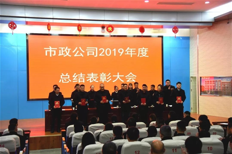 2020年1月21日,市政公司召开了2019年度总结表彰大会。本次大会,公司总经理郑运成同志与100多位员工一同回顾了2019年的工作成绩,并对公司2020年各项工作进行了部署和计划。同时,大会还对2019年度“先进科室”、“优秀项目经理”、“先进工作者”等进行了表彰和颁奖,场面气氛十分热烈。