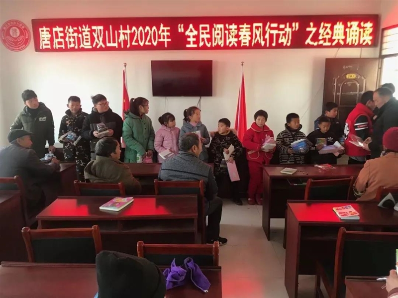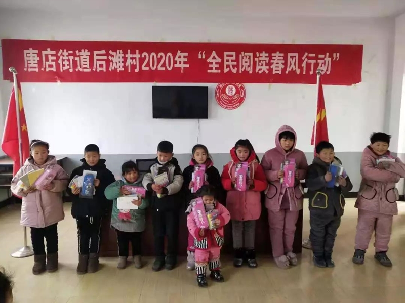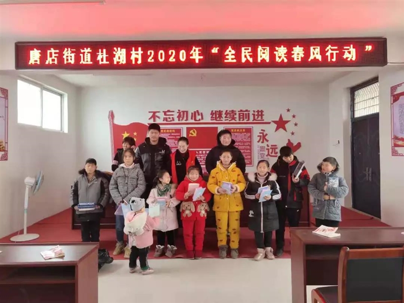 为了给孩子们、需要帮扶的群众们、给广大农村的乡亲们送来阅读的关爱,让大家感受到带着书香的温暖,1月22日,唐店街道组织各村(社区)在新时代文明实践站分别开展了一次“全民阅读春风行动”活动。主要召集各村留守儿童、贫困家庭困难儿童为阅读重点参与对象的125名中小学生。开展了读书、赠书、赠送学习用品几项环节活动。