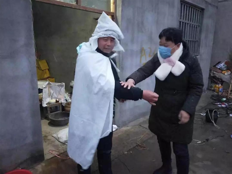 党员志愿者到白事事主家中进行宣传动员,要求一切从简,在非常时期共同守护父老乡亲的生命安全。