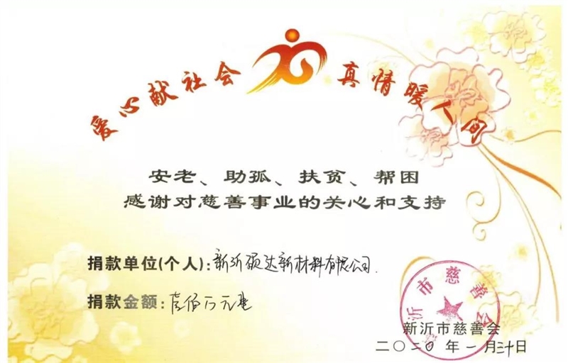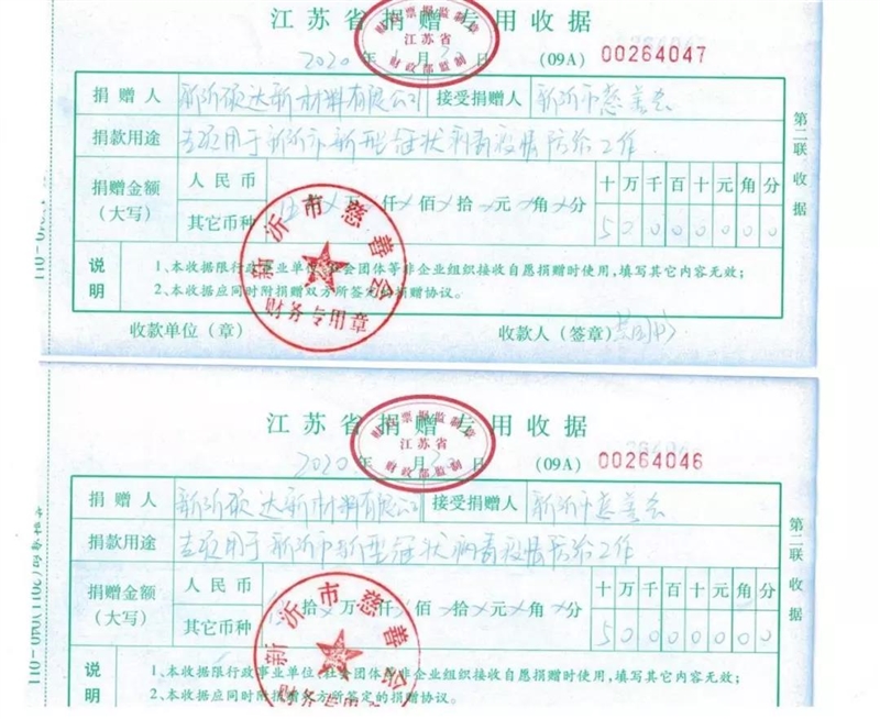 在疫情防控第一时间,刘书松积极响应市政协发出的助力防疫号召,代表公司向新沂慈善会捐赠现金100万元,专项用于我市新型冠状病毒疫情防控工作。