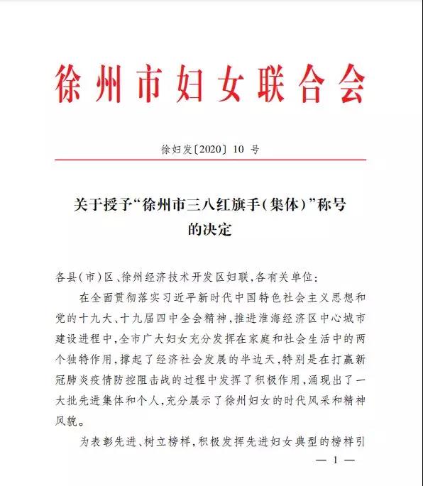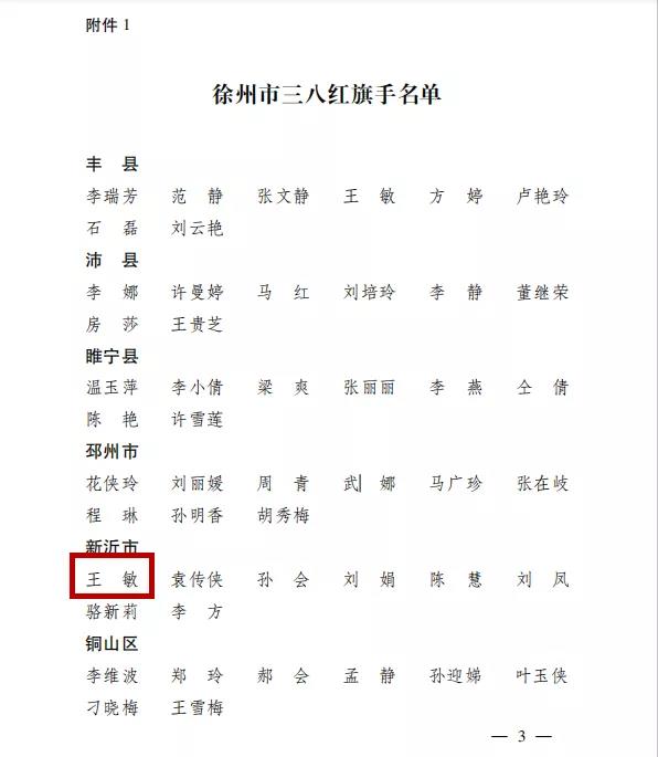 近日,我院干警王敏被徐州市妇联授予“徐州市三八红旗手”称号。不久前,她还荣获2019年度新沂市好媳妇提名奖。