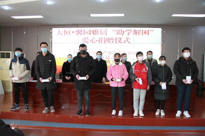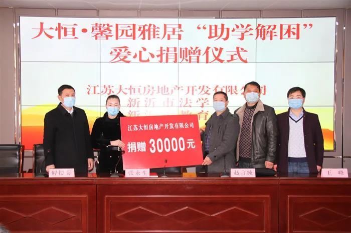 3月15日,大恒·馨园雅居“助学解困”爱心捐赠仪式举行。仪式上,江苏大恒房地产开发有限公司向教育系统捐赠价值3万元的手机30部,用于资助九年级至高三年级家庭困难的学生,帮助他们在疫情期间进行线上学习。市教育局工会主席张永生,市法学会、江苏大恒房地产开发有限公司相关负责人出席捐赠仪式,局相关科室负责人,14所学校分管教干及受赠学生代表参加活动。