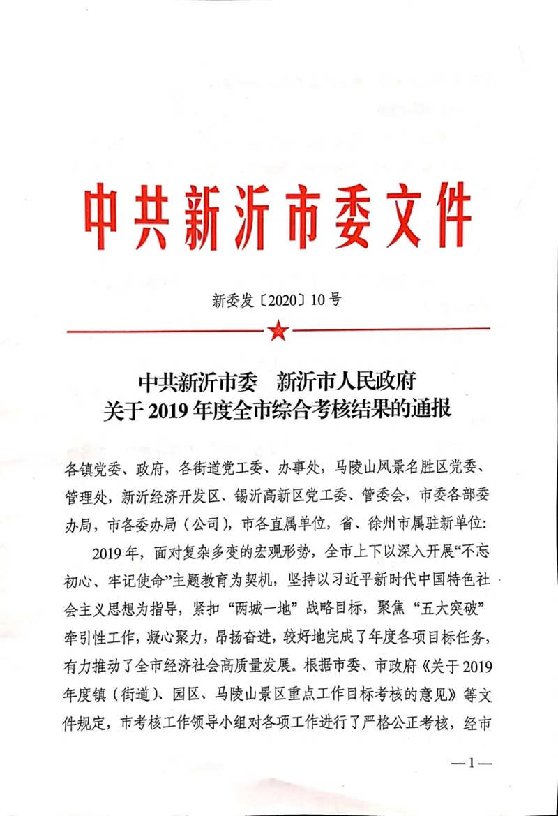 3月20日,从新沂市决胜高水平全面建成小康社会动员会暨2019年度总结表彰大会上传来喜讯,新沂法院荣获2019年度新沂市综合考核一等奖,这是我院连续第三年获此表彰。另外,我院申报的“推行‘3456’工作模式,创建全国模范法院”荣获新沂市“创新奖”二等奖。