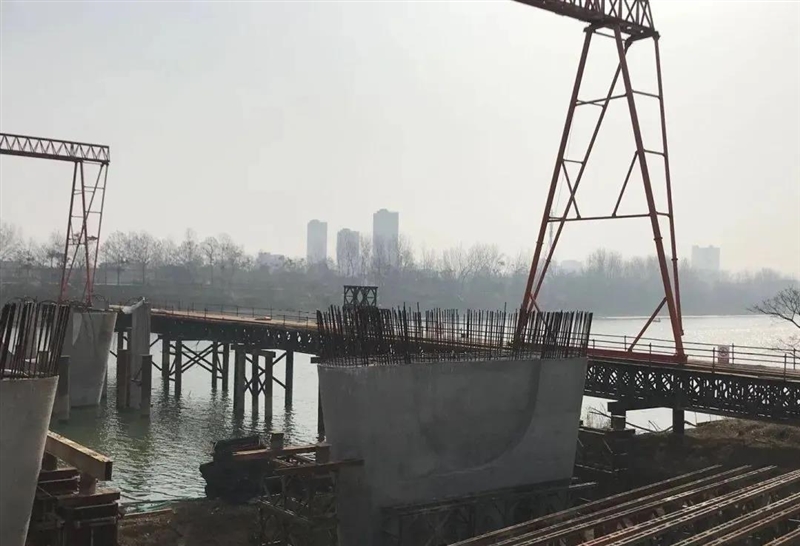 徐海路沭河大桥施工现场,工人们正在紧张作业,各种机械车辆来回穿梭,现场一派热火朝天景象。据工程技术负责人赵礼表示,2月20日顺利复工后,工程正在进行下一步工序主墩的0#块施工和引桥箱梁预制和架设施工,预计今年年底主桥实现合拢,主体工程完工,明年6月实现整个工程通车,为党的百岁生日献礼。