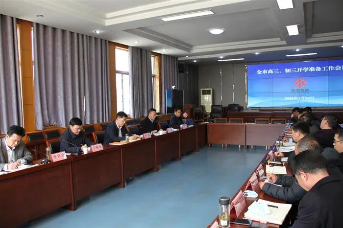 3月24日,市教育局召开全市高三初三开学准备工作会议。会议强调,各校各单位要严格落实省、市3月30日起分批次、错峰开学相关文件精神,认真贯彻市委、市政府决策部署,以对学生、对家长、对社会高度负责的态度,抓防控,保安全,抢时间,提质量,严而又严、实而又实、细而又细切实做好高三初三开学准备工作,确保“校园安全、师生无恙”,坚决实现疫情防控和质量提升“双胜利”目标,向全市人民交上一份合格的答卷。局领导李超、桂彬、王兆友、房树仲、蔡启宏出席会议,局相关科室负责人,全市各高中、初中学校负责人参加会议。