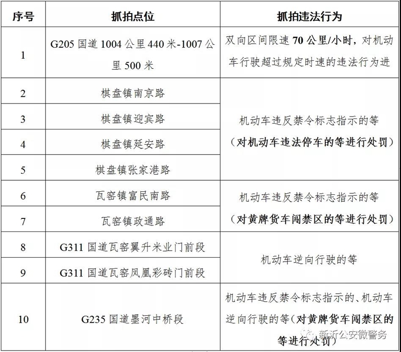 以上通告点位电子抓拍自2020年4月7日起实施。