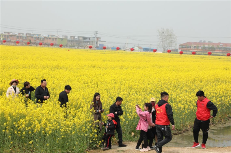 近日,棋盘镇团委组织志愿者来到棋盘镇的油菜花田,展开志愿服务。