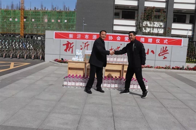 疫情无情人有情,众志成城共战“疫”,为守护师生健康,筑牢疫情防控屏障。近日,新沂市游泳协会于华强会长一行五位领导来到城东小学,向学校爱心捐赠了100桶2.5L酒精消毒液、500个一次性口罩、200瓶免洗消毒液,助力学校开展卫生防疫工作,