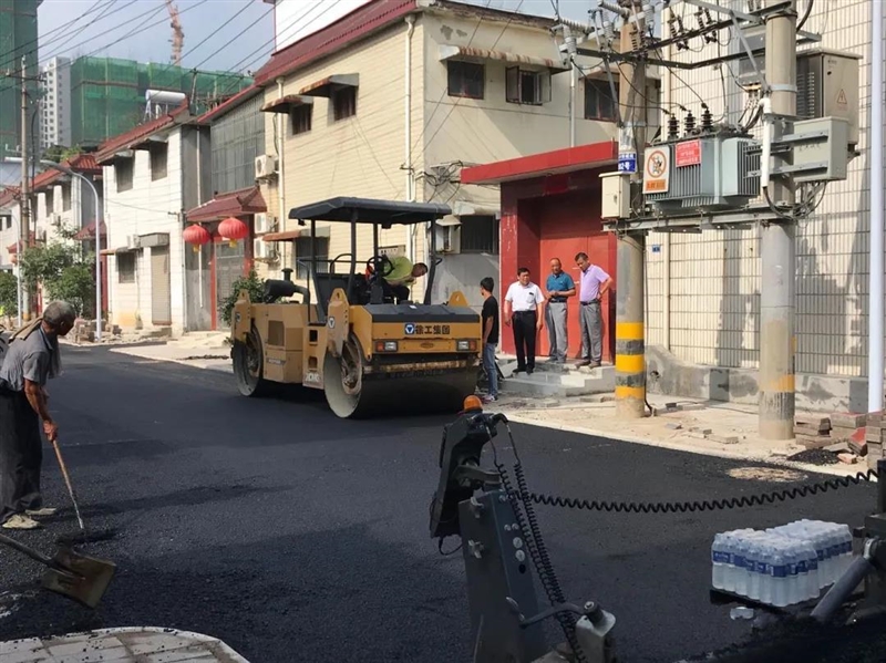 在钟吾南巷改造工程施工现场,记者看到沥青摊铺机正在进行沥青摊铺作业,压路机正在进行沥青碾压作业。