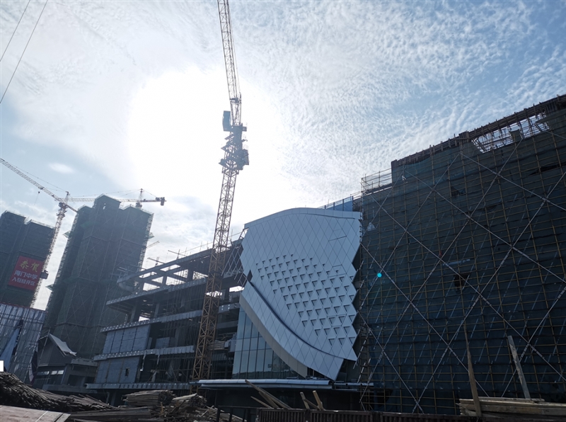为确保8月20日项目满铺开业,施工方在建设过程中采取多工种、多工序相互穿插、紧密衔接、同时施工作业的“穿插”作业方式,全力以赴加快施工进度,目前大商业项目已完成60%。