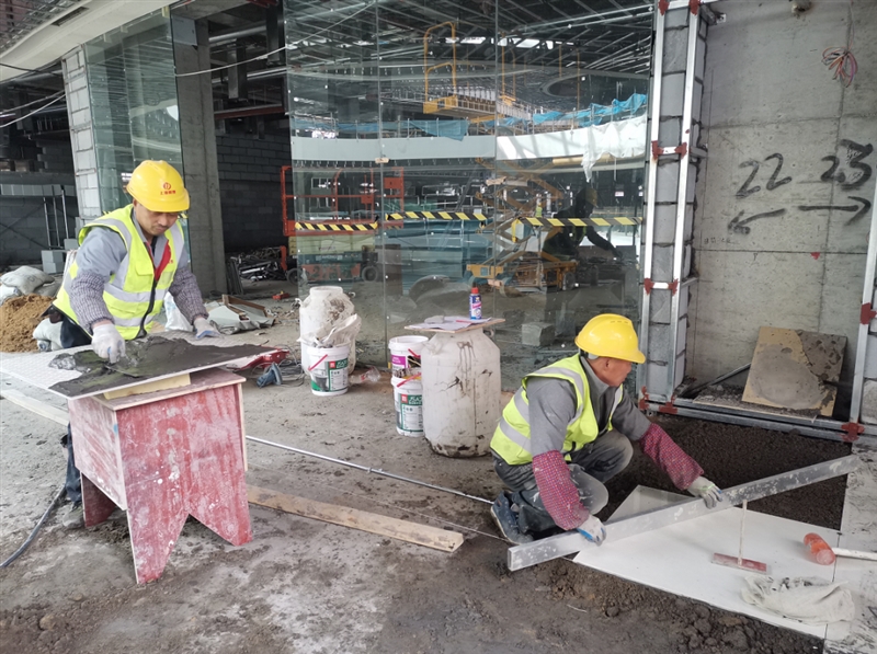 为了确保项目8月20日满铺开业,施工方抢抓当前有利施工时机,调整项目整体进度计划表,并逐步分解到月、周、日计划,合理安排机械及人员。与此同时,采取多工种多工序相互穿插、紧密衔接、同时施工作业的“穿插”作业方式,全力以赴加快施工进度。