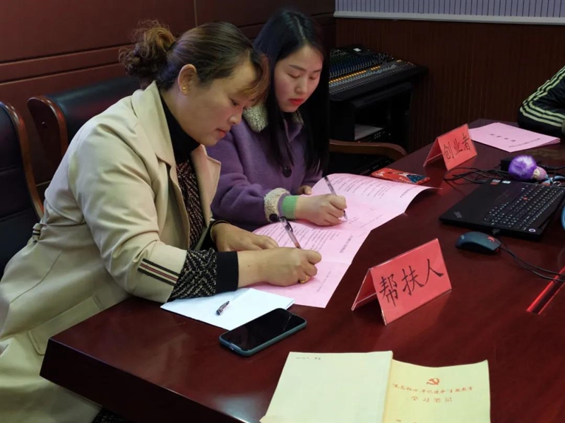 接着,镇妇联举行“创业手牵手 帮扶一加一”签约仪式,让四位创业能手和待业女性当场签约结对。然后,镇劳服所负责人介绍了妇女小贷政策和贴息政策,农村商业银行和邮储银行的负责人各自介绍了本行支持妇女创业的相关金融产品。