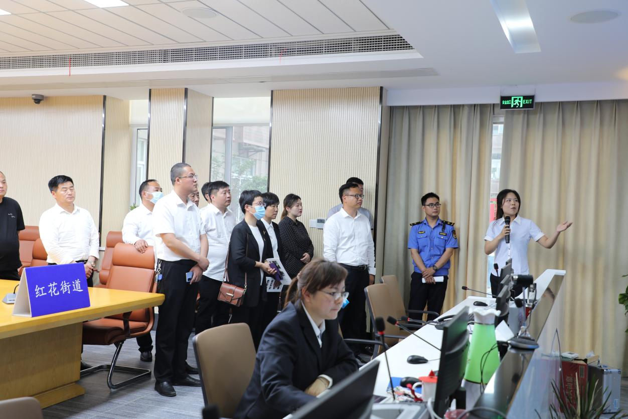 5月27日下午,考察团来到南京市秦淮区红花街道城管科,参观学习了党建引领下基层治理“一张网”、政务服务“一窗口”、综合执法“一队伍”、指挥调度“一中心”的“1+4”基层社会治理新模式。红花街道整合建设街道综合服务大厅和社会治理综合指挥中心,将分散在外的部门全部调整回街道,实现统一挂牌、统一办公、统一管理,有效解决了基层社会治理过程中看不见、无从管,看得见、管不了,管得了、管不好的难题。