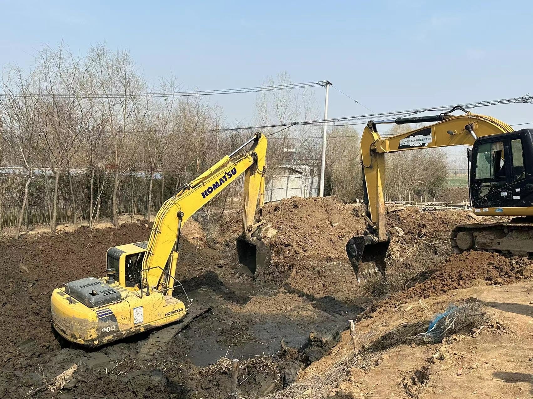 在港头镇潼沟村,两台挖机正在对村庄内的西沟进行清淤。据附近村民介绍,整治前,沟渠内杂草丛生,生活垃圾随意堆放,导致水流不畅,水体发臭发黑,严重影响村民灌溉田地。