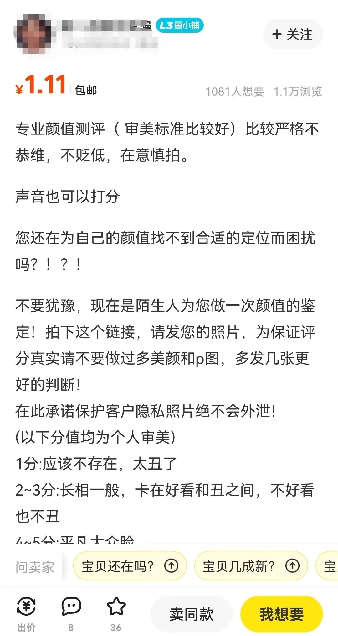 二手交易平台卖家提供“颜值打分”服务