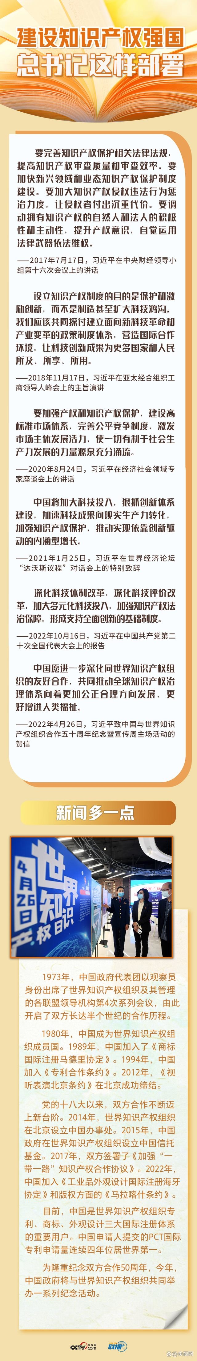 党的十八大以来,习近平总书记高度重视知识产权保护工作,多次作出重要指示、发表重要论述,引领我国知识产权事业不断发展,走出了一条中国特色知识产权发展之路。央视网《联播+》特推出长图解,与您一同学习。