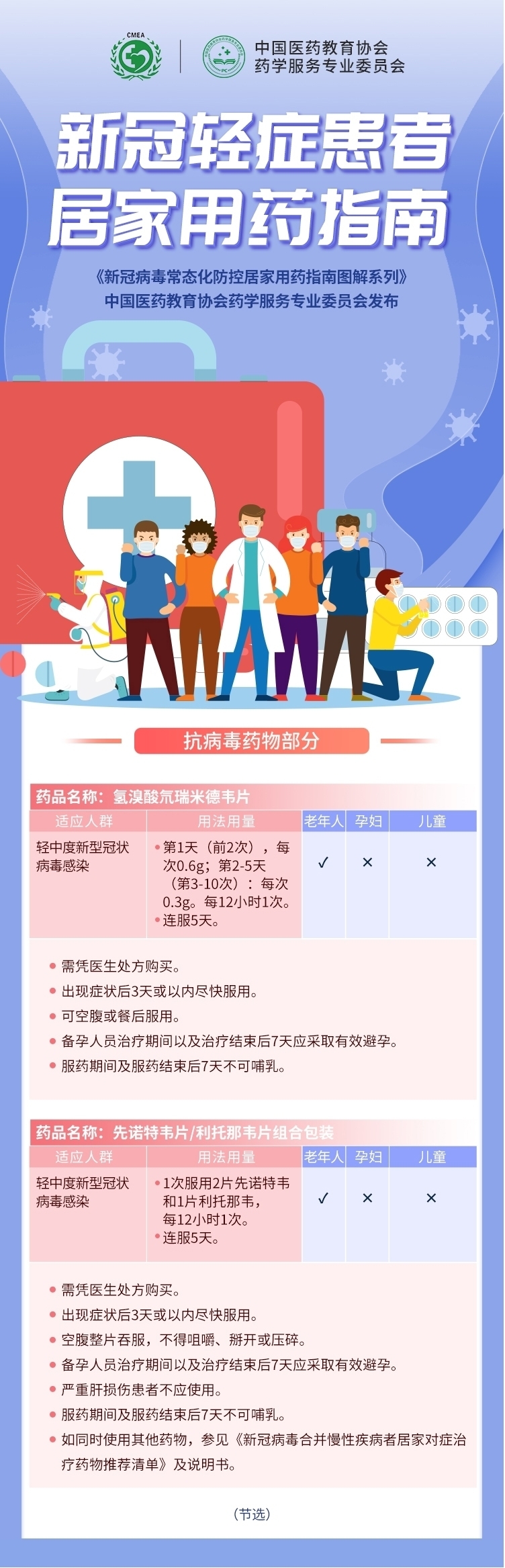 据悉,中国医药教育协会组织了全国15家权威的高校、科研院所、医疗机构的36位专家组成专家委员会,主导制订了《新冠病毒常态化防控居家用药图解系列》。