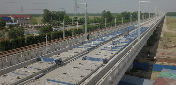 目前徐州境内126.03公里路段已经全面开始无砟轨道施工