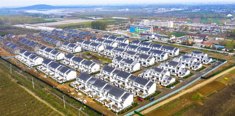 搬迁新建型农村社区“桃花源”位于时集镇北大门的白石村,北靠踢球山林场万亩桃园,西有秀美踢球山和天鹅湖田园综合体。5月6日,我与相关工作人员以及村民代表来到“桃花源”二期项目施工现场,施工单位正在紧张施工,现场一片繁忙景象。一栋栋房屋主体已完工,配套设施留出规划位,整个项目与周围自然环境相互映衬、相得益彰。