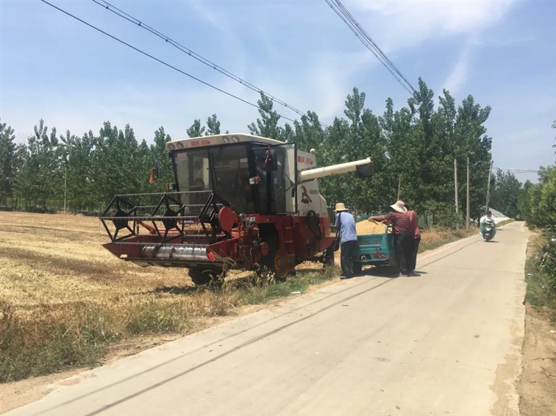 我们看到地里的收割机忙碌的身影