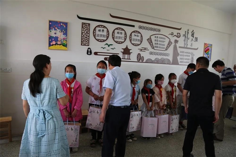 6月2日,市人大机关部分干部职工来到合沟镇界沟小学,开展“爱心储蓄罐”助学活动,向12名困境儿童每人捐助500元助学金,并赠送了学习用品。合沟镇主要负责同志参加了活动。