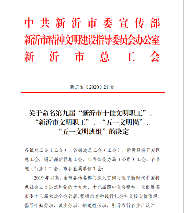 近日,市园林处公园广场养护班组获“第九届新沂市“五一文明班组””荣誉称号。