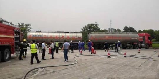 各单位立即分头行动。连徐支队第二大队执法人员配合交警临时封闭服务区入口,紧急疏散服务区内停留的人员和车辆,并全面检查该车的相关运输手续和证件;消防人员对罐体的泄漏处不间断进行喷水降温,对泄漏的液体进行稀释处理,并及时对路面进行洗消;新沂市应急管理局紧急调度一辆危险品罐车,前来服务区进行驳载转运。