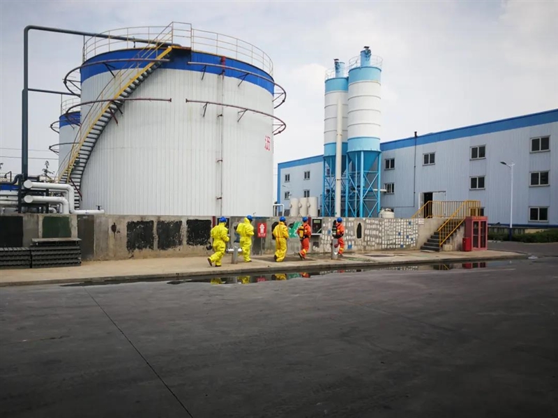 演练模拟场景为阿尔法防水新材料江苏有限公司1号沥青储罐突发导热油阀泄漏,并引发火灾,现场操作人员处理事故被困,情况危急,公司安保部门先行启动公司应急预案自救控制态势,并及时将情况汇报区安监局,区安监局紧急启动应急救援预案,并联系化工园区应急指挥中心,周边企业应急救援队等专业救援人员按指令迅速进入“现场”有序实施救援,救援人员迅速将被困人员解救送医,控制火情,更换故障阀门,使企业转危为安。整个救援活动组织有序,协调有力,措施得当,仅用30分钟就完成全部应急救援任务。