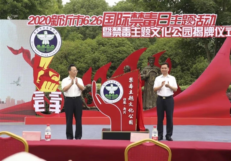 今年6月26日是第33个国际禁毒日。为深入贯彻习近平总书记关于禁毒工作重要指示精神,全面落实国家禁毒委员会《关于加强新时代全民禁毒宣传教育工作的指导意见》,不断掀起禁毒宣传教育活动新高潮,广泛动员社会力量参与禁毒斗争,按照国家、省、市禁毒委《关于认真组织开展2020年“全民禁毒宣传月”活动的通知》的要求,结合我市当前疫情形势,6月24日上午9时30分,新沂市禁毒委员会在新沂市禁毒主题文化公园隆重举行了2020新沂市6.26国际禁毒日主题活动暨禁毒主题文化公园揭牌仪式。