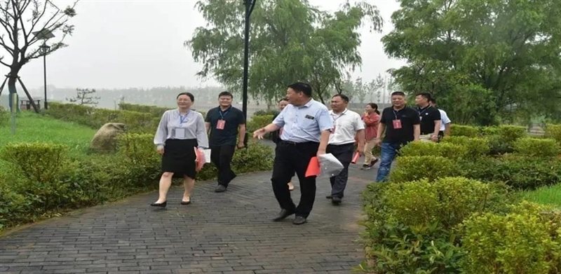 镇村建中心主任黄文胜在向代表们介绍老墨河公园情况。