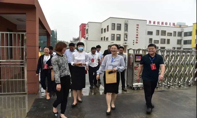 视察组一行在中心幼儿园园长许秀丽的陪同下,察看了幼儿园的室外活动场地、各功能科室、食堂等场所,现场听取幼儿园建校情况、办园规模、师资力量、特色课程方面的汇报。