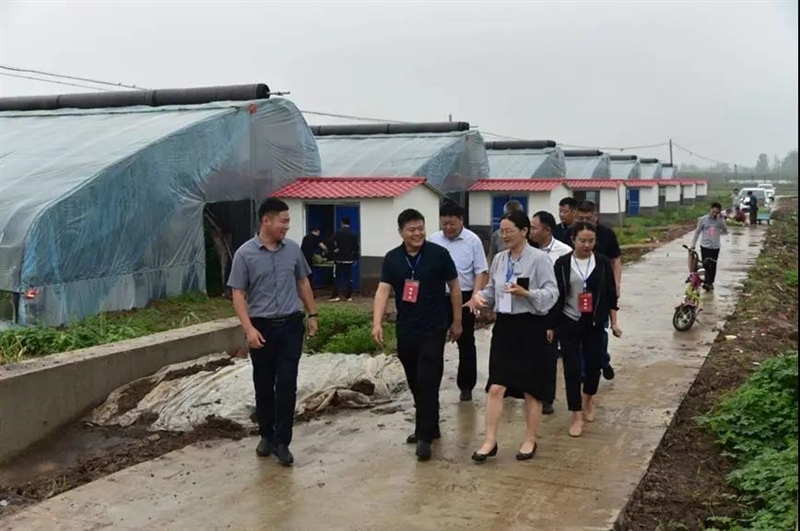 戴沟村支部书记卞昊介绍特色大棚情况。