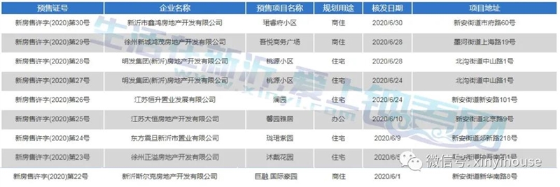 据徐州房产信息网数据显示,在6月份新沂颁发了9份预售证,分别是: