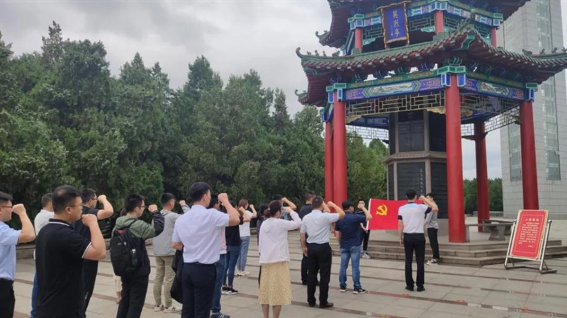 在英烈亭前,全体党员面对党旗,庄严宣誓,重温入党誓词,牢记初心使命。随后,全体同志共同参观了孟良崮战役纪念馆。