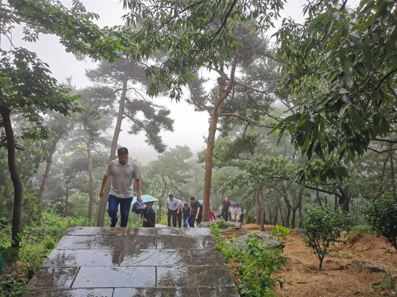 沥沥细雨丝毫不影响前进的步伐,最后,大家一起登上孟良崮山顶。站在山顶远眺,当年的孟良崮战场尽收眼底,山峦迭起,地势险峻,这场战役的艰难程度可想而知。