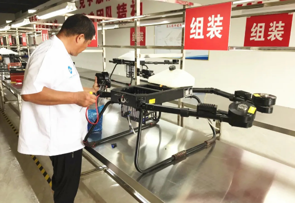 近日,记者走进网递智能无人机项目中试车间,看到工人们正在进行Z30油电混合植保无人机组装作业。据相关负责人介绍,从最初的装电机到最后的调试大约需要3个小时,一名操作工一天最多可以组装4台。
