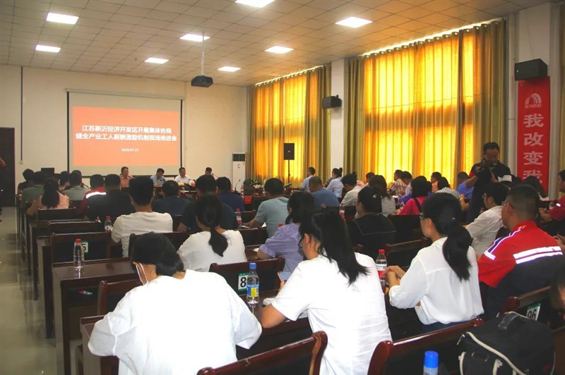 7月27日,江苏新沂经济开发区开展集体协商健全产业工人薪酬激励机制现场推进会在徐州卧牛山新型防水材料有限公司举行。区产改试点企业代表、各企业工会主席及职工代表80余人参会。新沂市总工会党组书记、常务副主席郝朝平应邀出席会议并讲话。