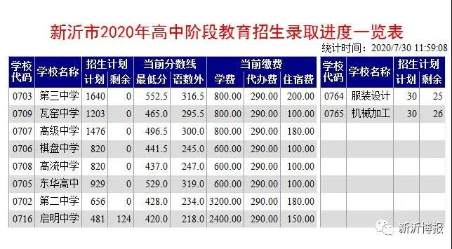 新沂高中阶段新生点录今天上午举行。据了解,今年一中统招录取分数线616(由于各校有指标生,降档分数不一),通过新沂招考网上录取平台查到,今年新沂三中录取的最低分数线是552.5、东华高中529分、王庄高级中学496.5分、瓦窑中学465、棋盘高中441.5、高流高中437、新沂二中428,具体参见下表……