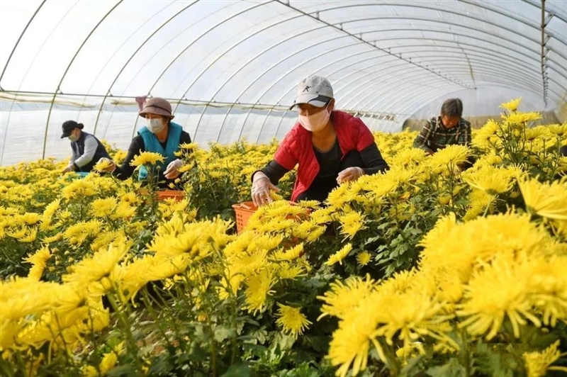 同样是这片骆马湖畔的黄土地,短短几年间,村集体是如何在这片土地上带领大家走出了兴村富民之路的呢戴忠辉告诉记者,致富的秘诀还是应了那句老话“要想富,先修路”,公路直接通到村里,为农产品打开了运输、销售的通途,也打开了卢圩村的致富之路。2016年,各项扶贫政策项目资金来到以后,村里就利用项目资金首先把道路修好了。村里路通了人才能进来。这一年,村集体成立了新沂市金朋农业服务有限公司、新沂市十人桥蟹田稻合作社,依托省级农业龙头企业江苏沂岸花卉股份有限公司鲜切菊花项目,采取“龙头企业+合作社+农户”的经营模式,建成连栋智能大棚2912平方米,温室大棚7650平方米,年产菊花80多万株,2016年当年收入近15万元。高效设施菊花园建成后,安排150个低收入农户进园就业,每人年收入增加两万多元。此外,村集体还通过技术管理、农资供应和产品销售等服务项目获得收入七万多元。2016年底,卢圩村村集体收入就达到了22万元。